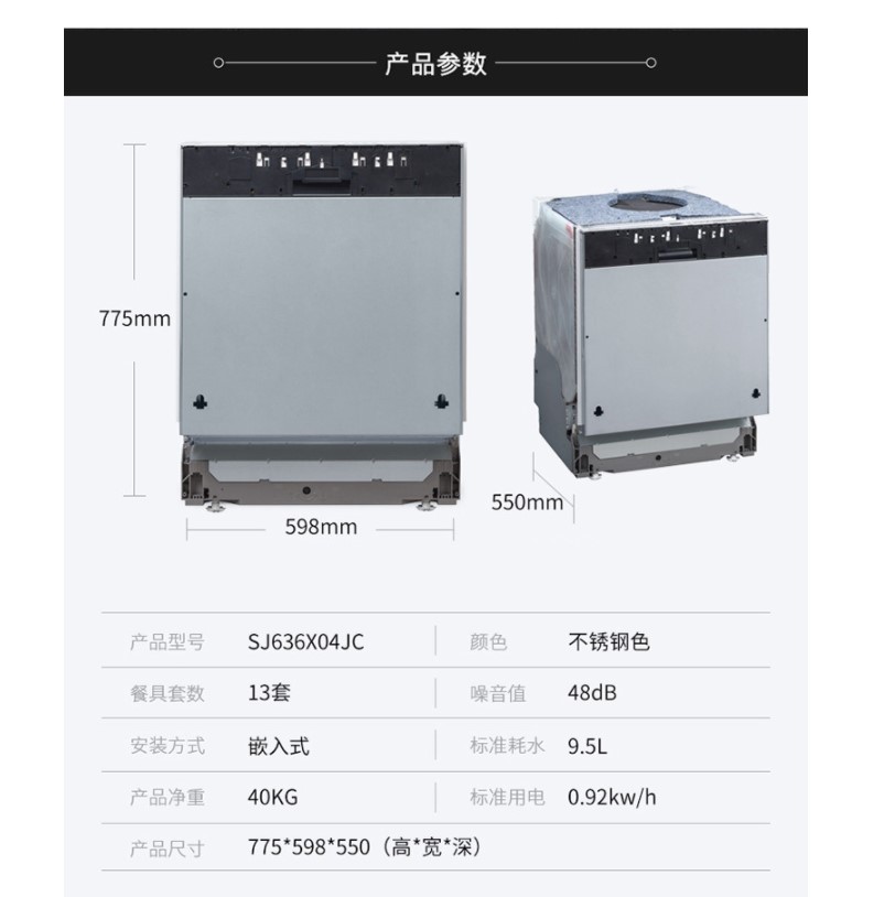 【抢亮碟洗碗盐礼金】西门子洗碗机智能除菌13套 SJ636X04JC