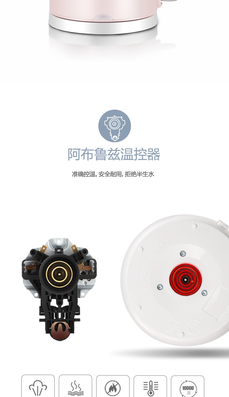 【双重防烫壶身 】1.7L快速沸腾防烫304不锈钢电热水壶