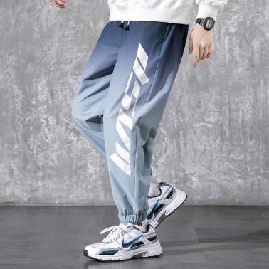 【薄款渐变】2021夏季男装新款潮牌抽绳束脚运动裤男士休闲裤