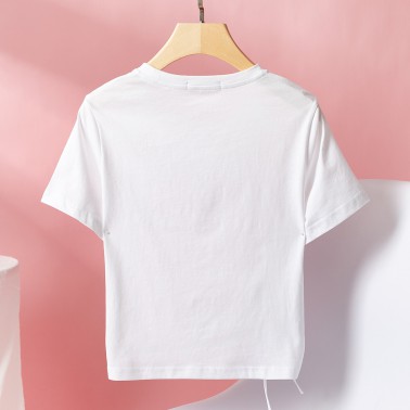 【100%全棉】短袖t恤女圆领纯棉bm风高腰露脐ins抽绳短款t恤夏